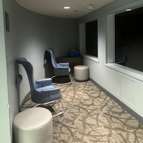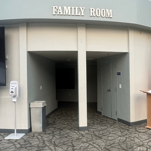 We do have a family room and a private nursing room for your convenience. Located at the top of the stairs next to the Sanctuary. There are rocking chairs in there so that you may continue to watch the service through the big windows.